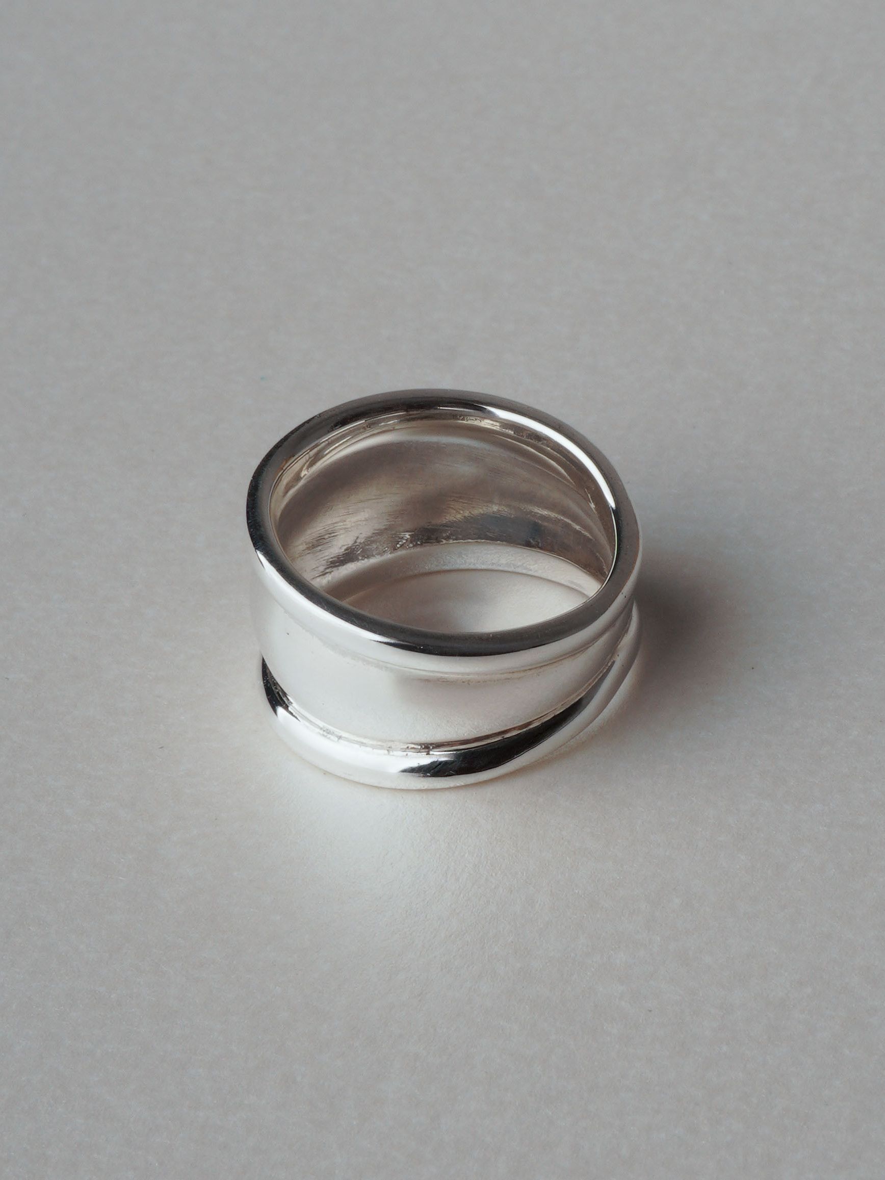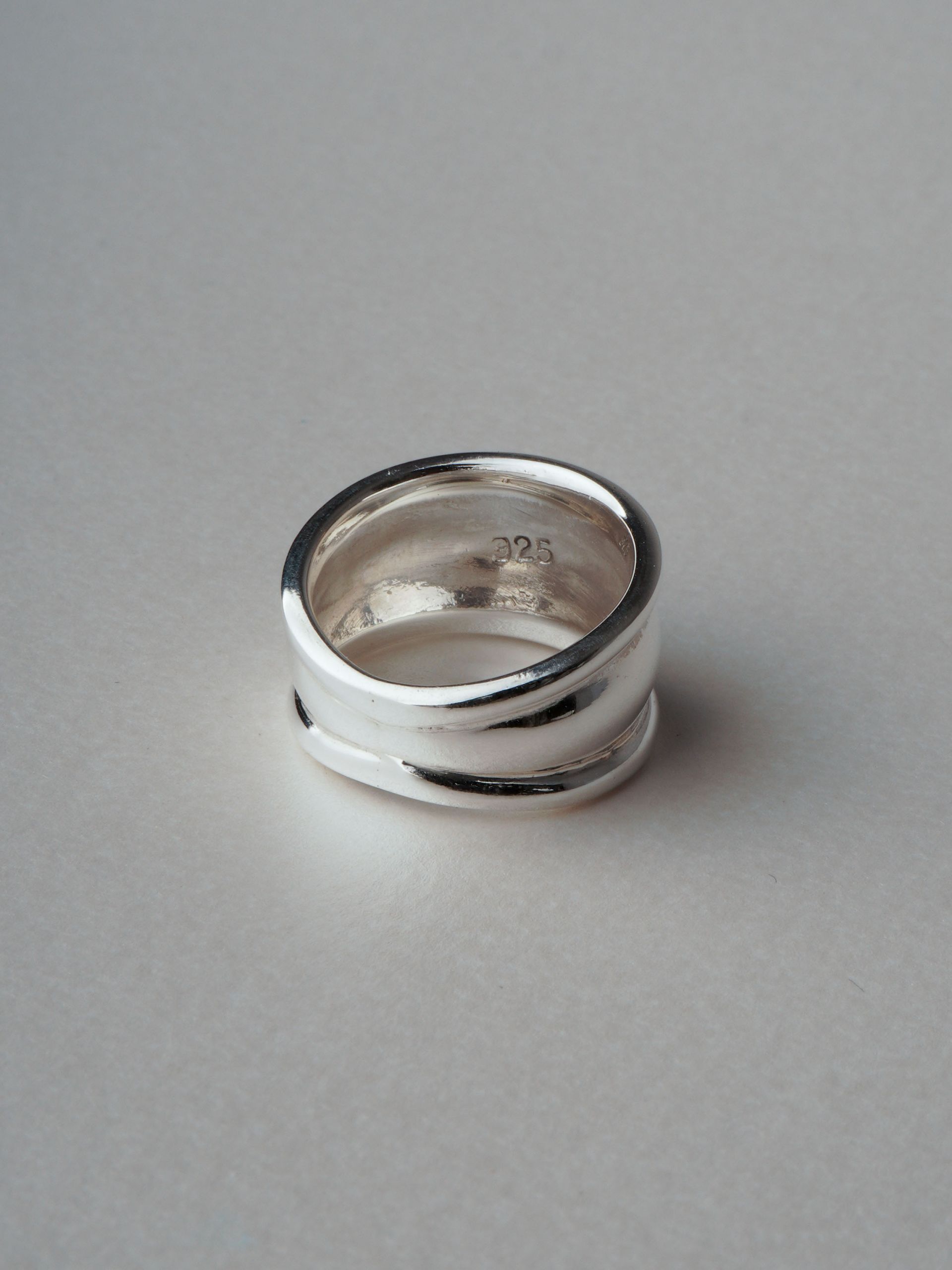 매끈하게 흐르는 라인의 실루엣이 돋보이는 하이엔드 무드의 실버 링입니다.
