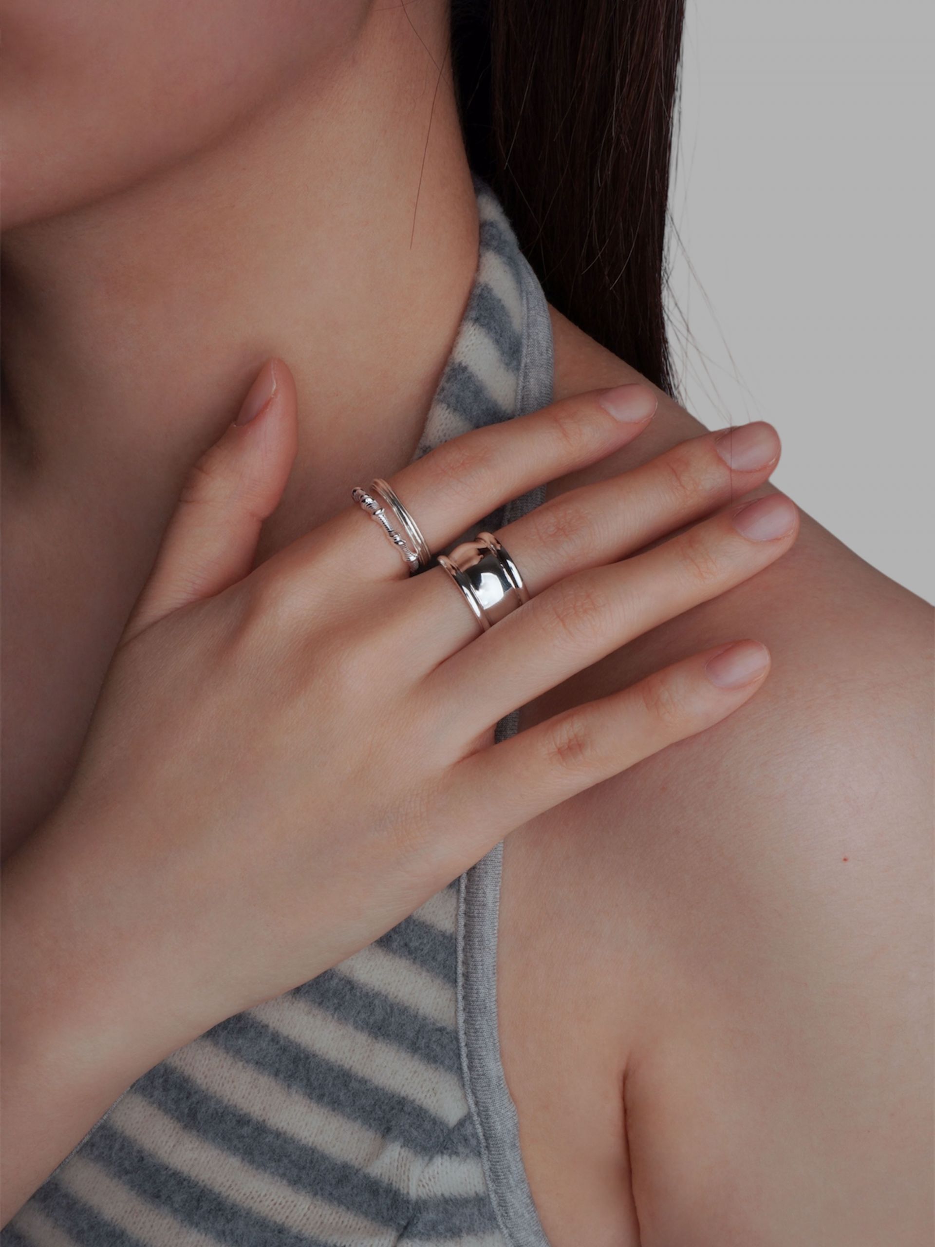 심플한 무드 덕분에 다른 링과의 레이어드도 깔끔하게 조화됩니다.