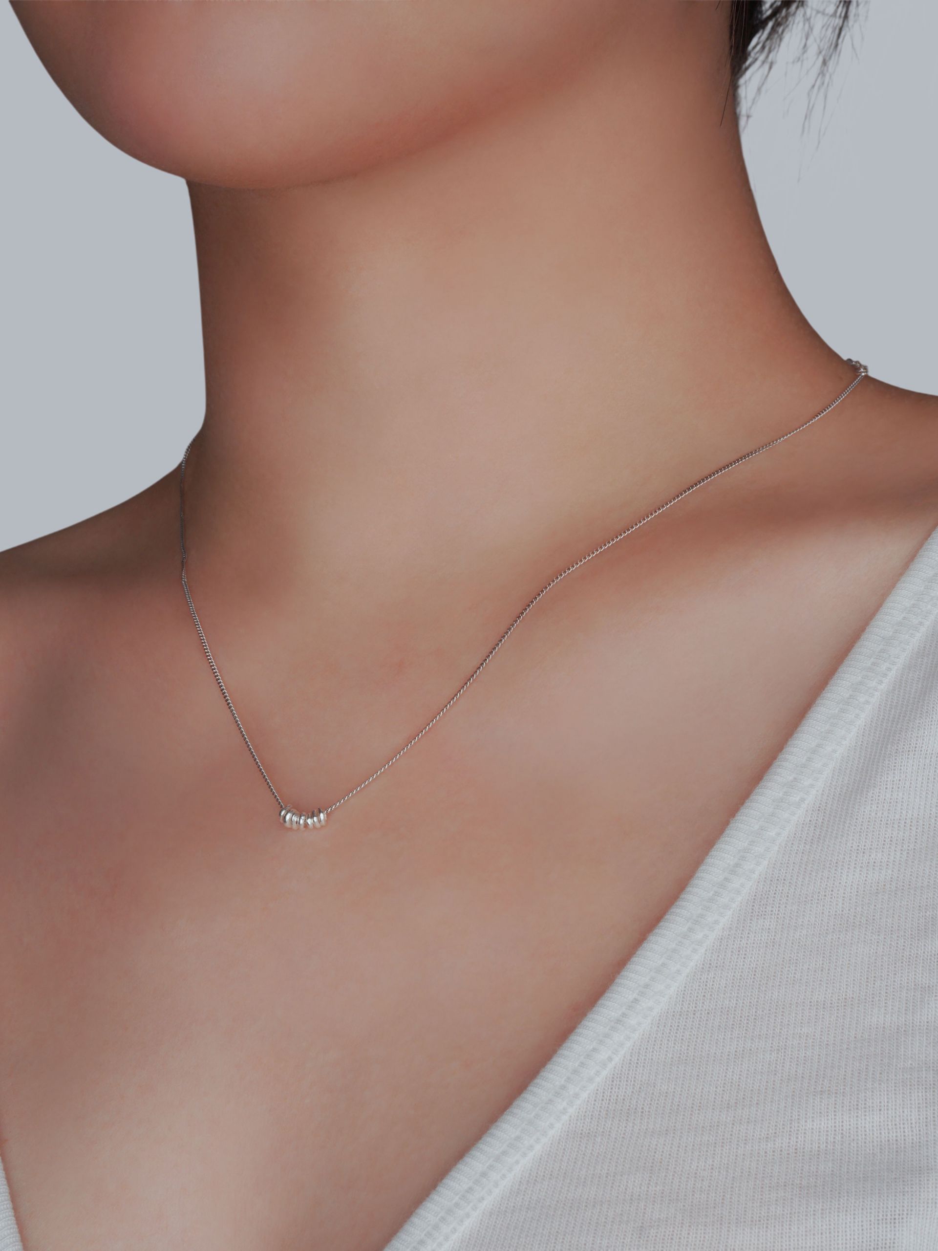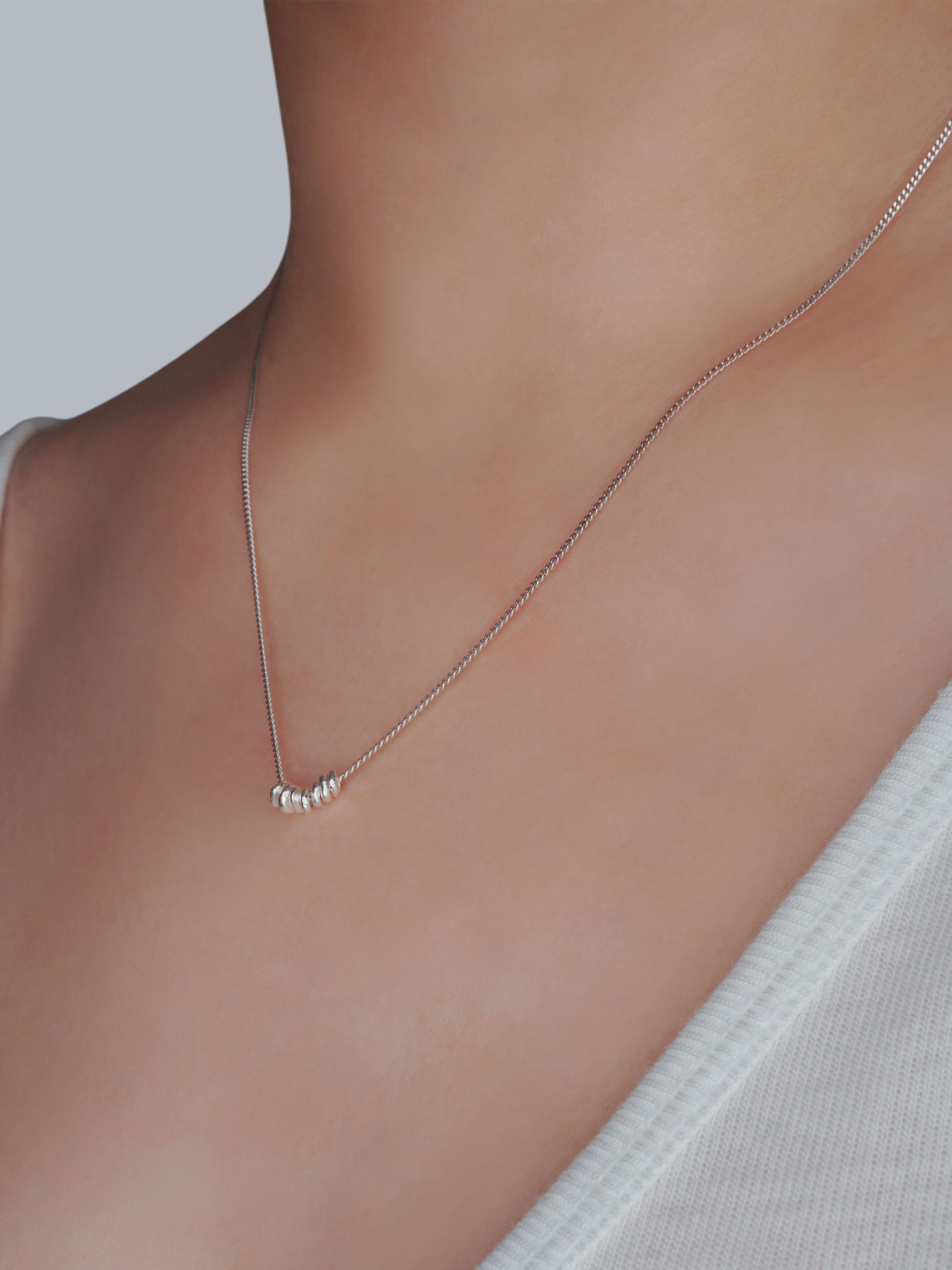 단독 착용 시에는 목선을 부드럽게 따라 내려오며 은은한 포인트가 되고, 다른 목걸이와 함께 레이어드했을 때도 조화롭게 어우러집니다.
