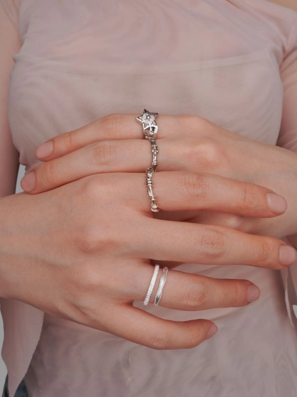 *실버는 공기 중에서 자연스럽게 산화해 고급스러운 파티나가 생깁니다. 밝은 톤을 유지하고 싶다면 사용 후 마른 천으로 닦아 지퍼백에 보관하고, 주기적으로 실버 폴리싱 천으로 관리해주세요.