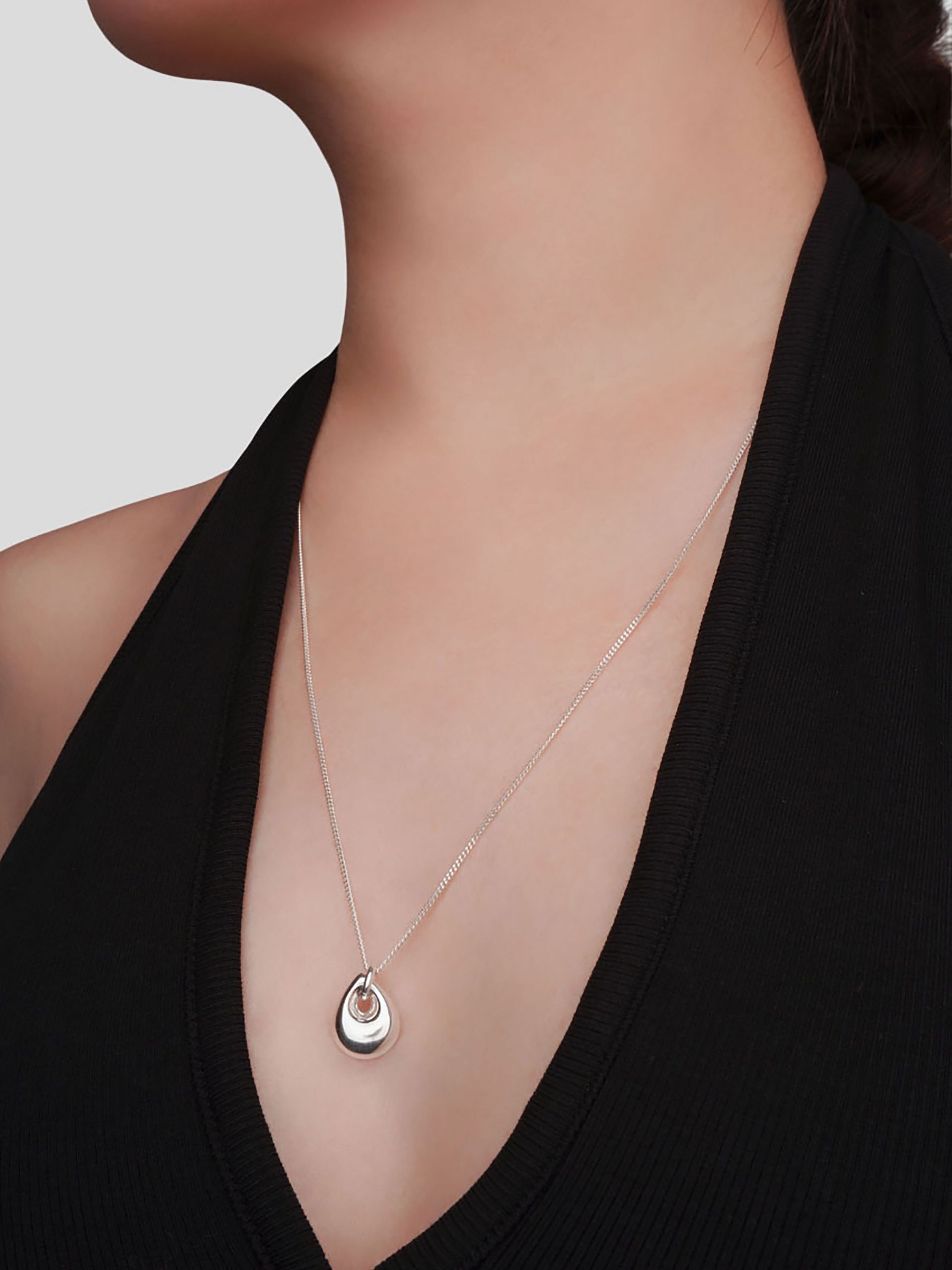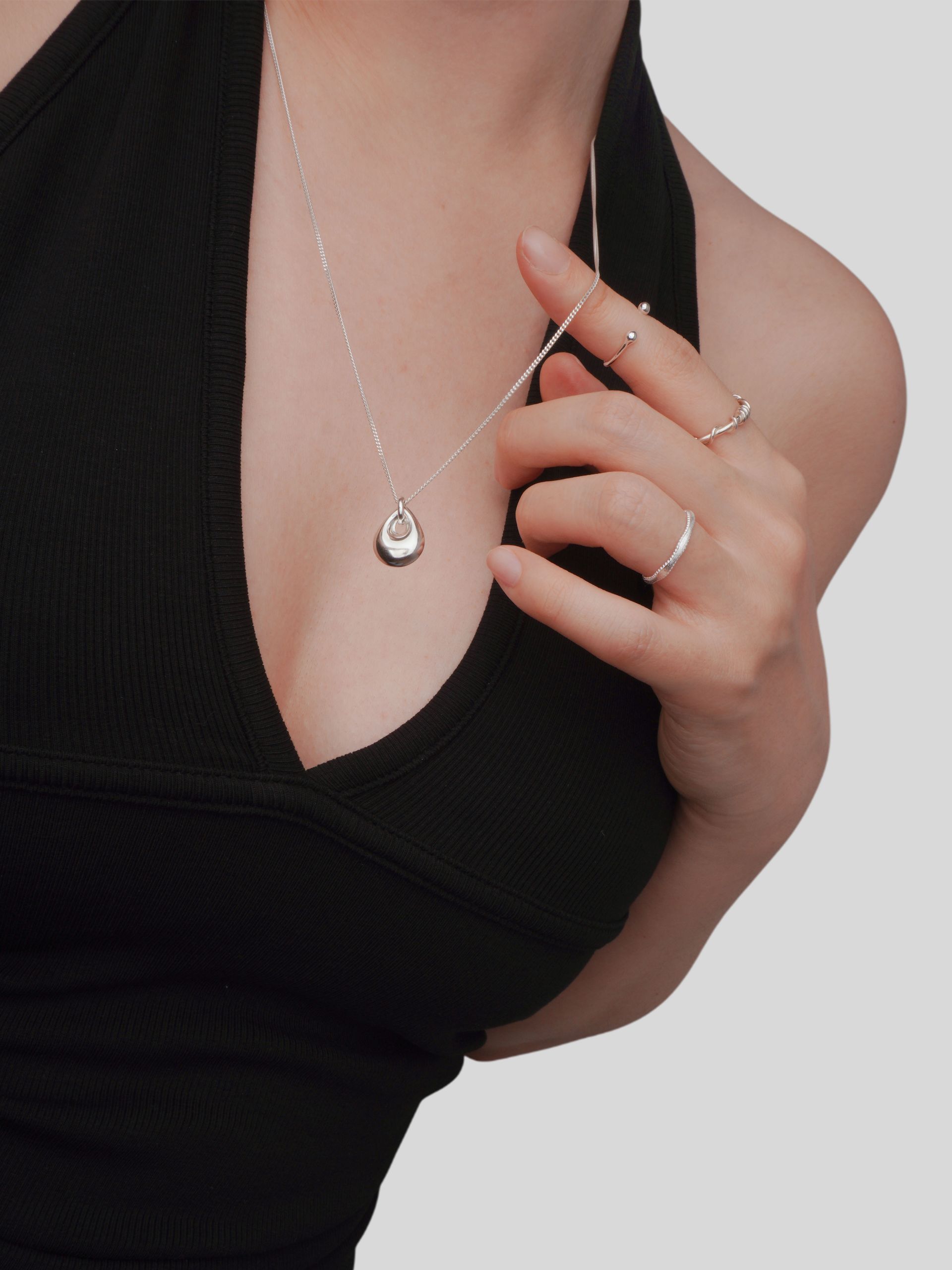부드러운 곡면으로 완성된 미니멀한 원형 펜던트가 돋보이는 실버 네크리스입니다.