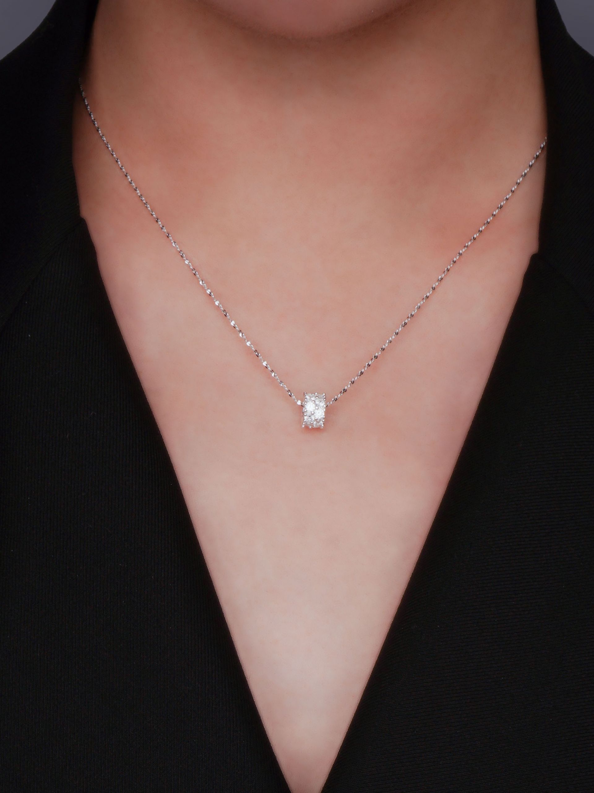 섬세하게 컷팅된 체인은 마치 별빛 가루가 이어진 선처럼, 목선을 따라 조용히 반짝이며 펜던트의 중심을 감싸줍니다.