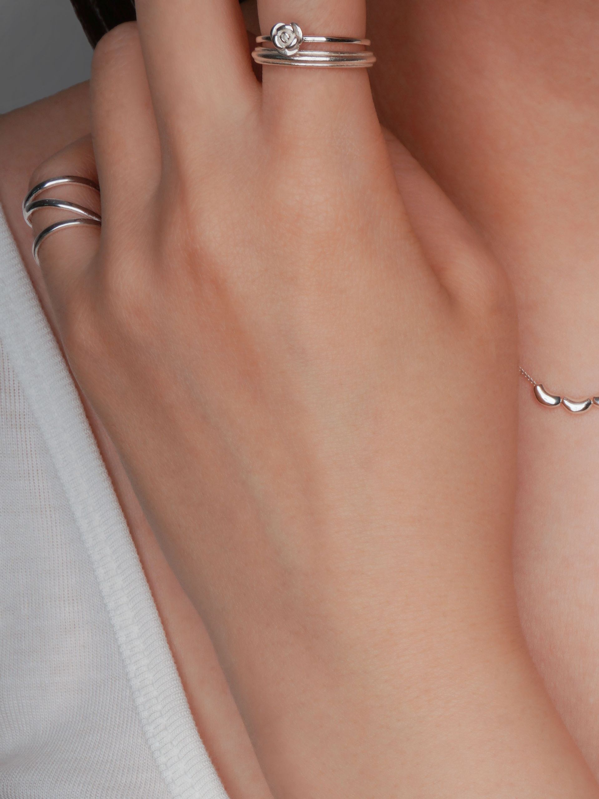 과하지 않은 플라워 포인트라 데일리 링으로도, 레이어드 포인트로도 자연스럽게 어울립니다.