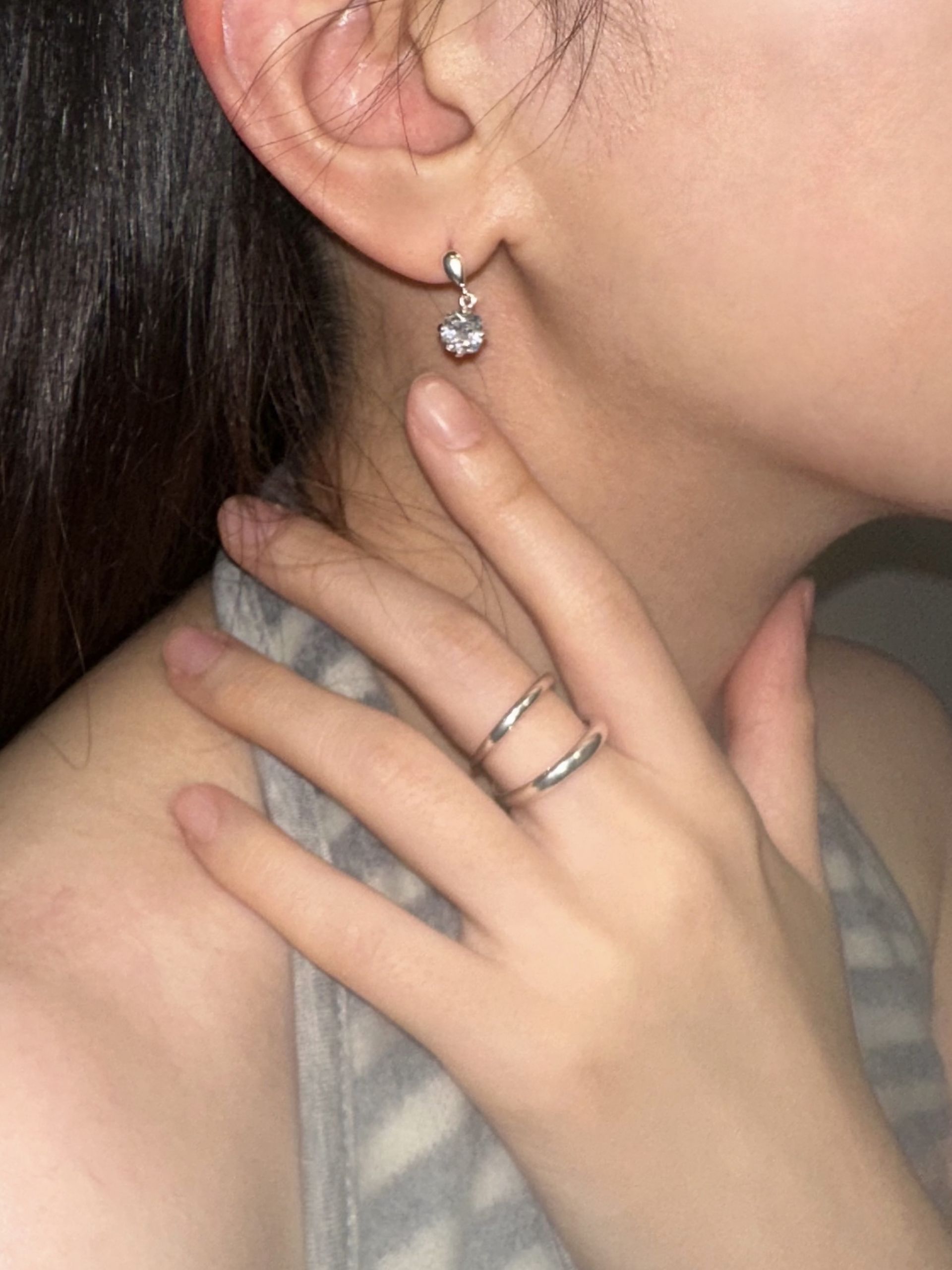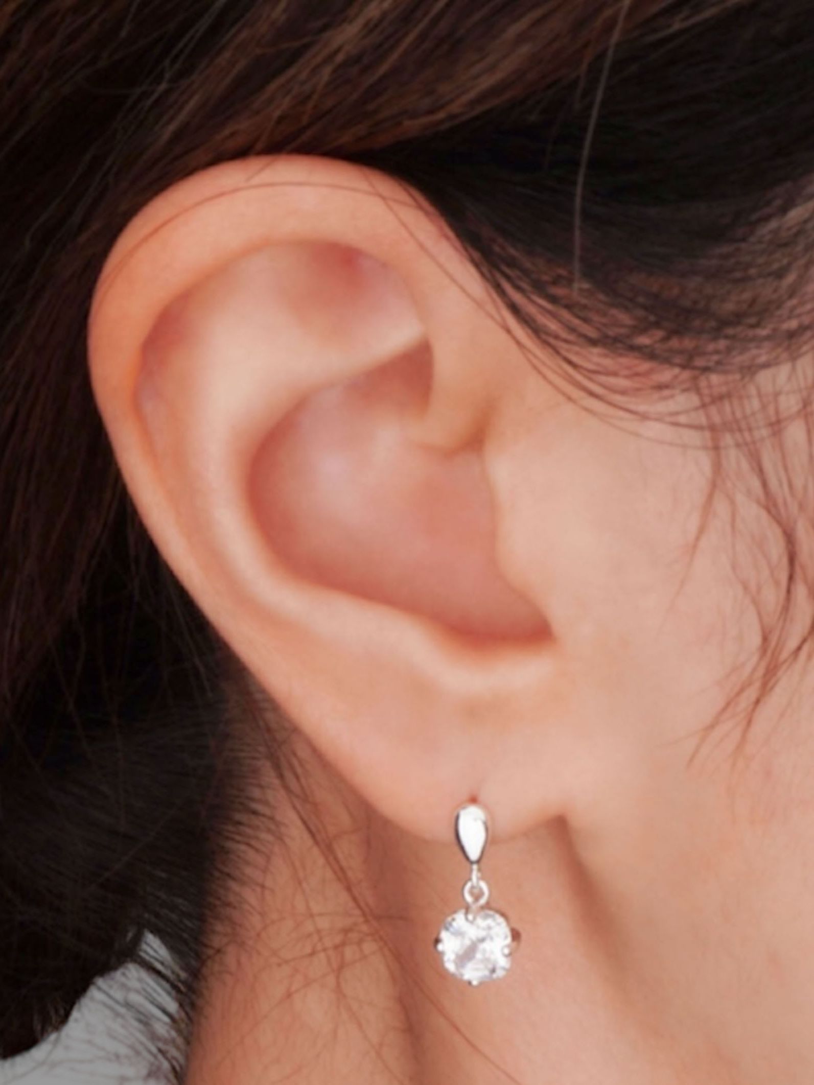 얼굴선을 은은하게 밝혀주는 드롭 이어링입니다.