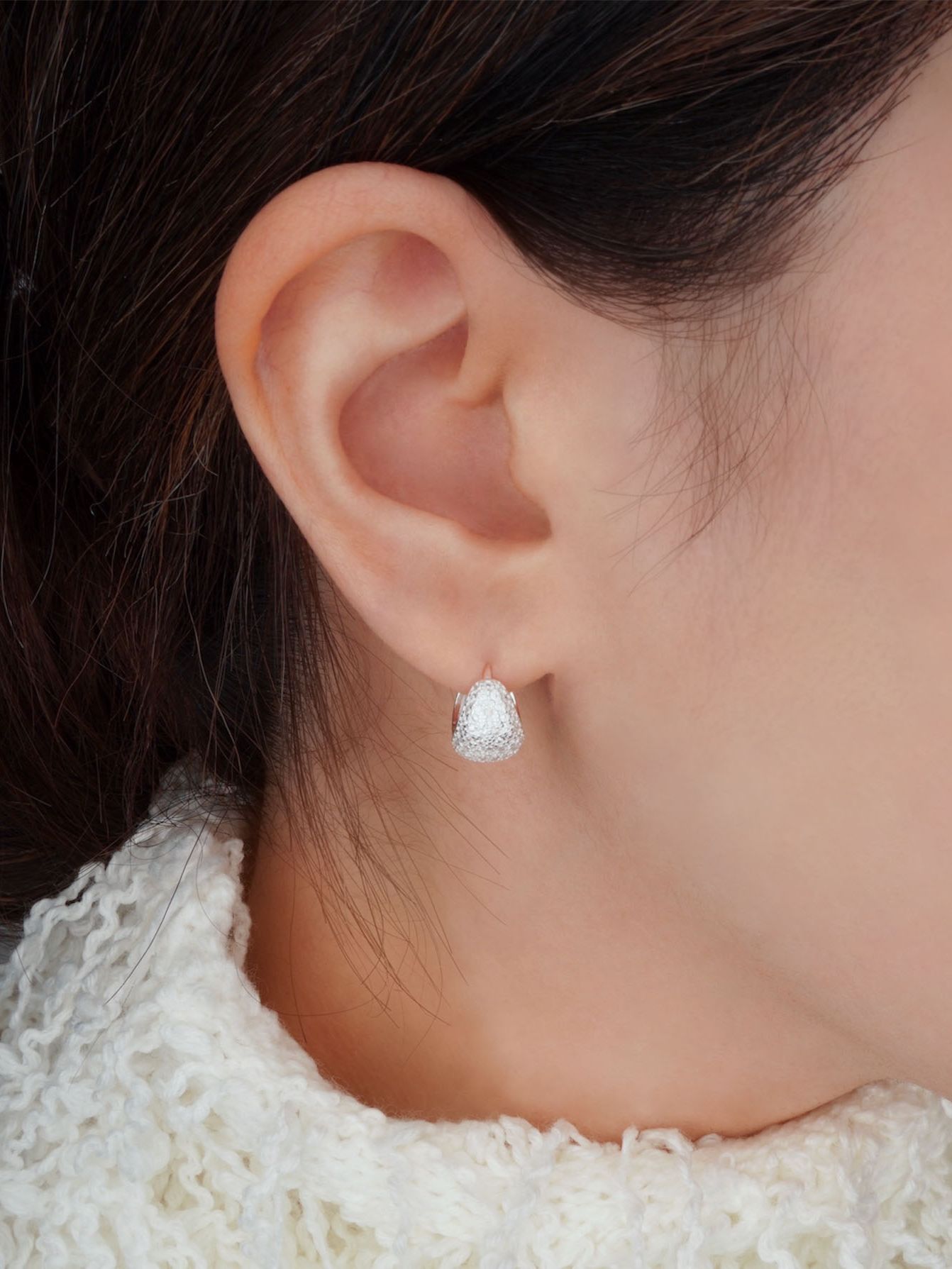 부드럽게 감싸는 실버 라인이 이어진 원터치 이어링입니다.