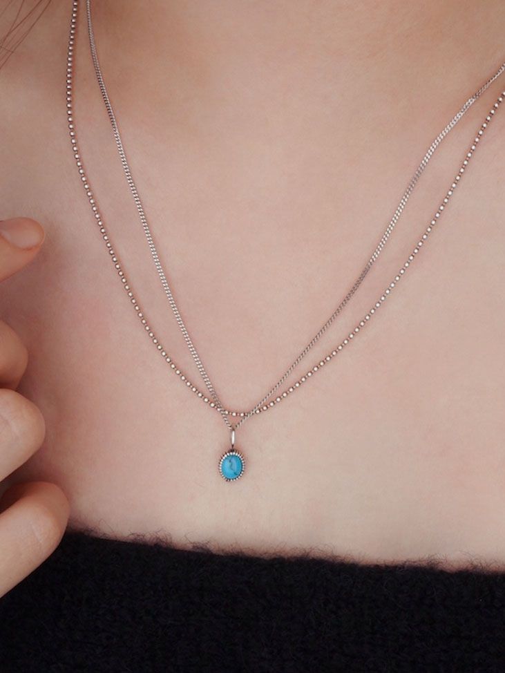 슬림한 실버 볼 체인에 유화 처리를 더한 목걸이입니다.