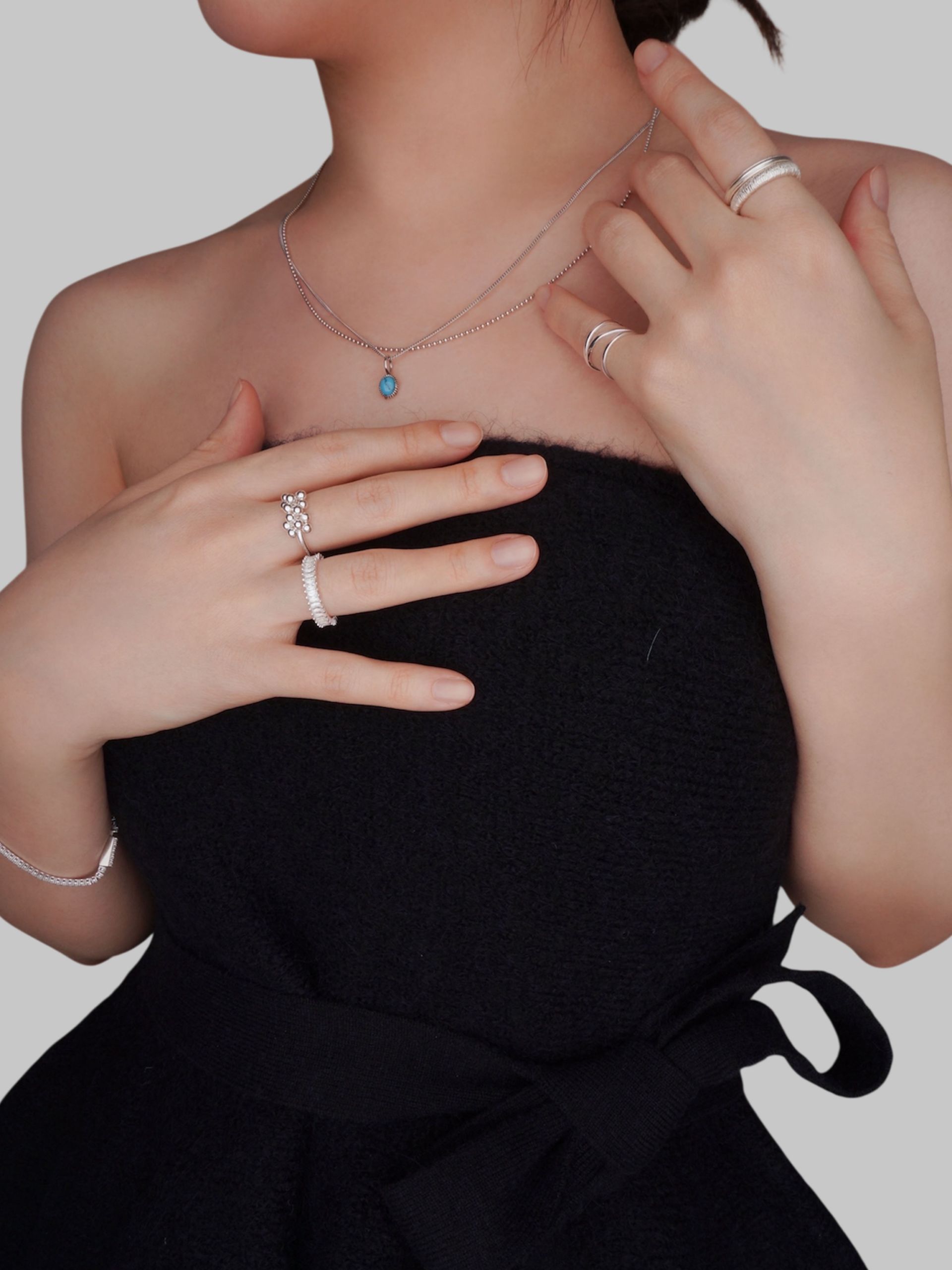 *실버는 공기 중에서 자연스럽게 산화해 고급스러운 파티나가 생깁니다. 밝은 톤을 유지하고 싶다면 사용 후 마른 천으로 닦아 지퍼백에 보관하고, 주기적으로 실버 폴리싱 천으로 관리해주세요.
