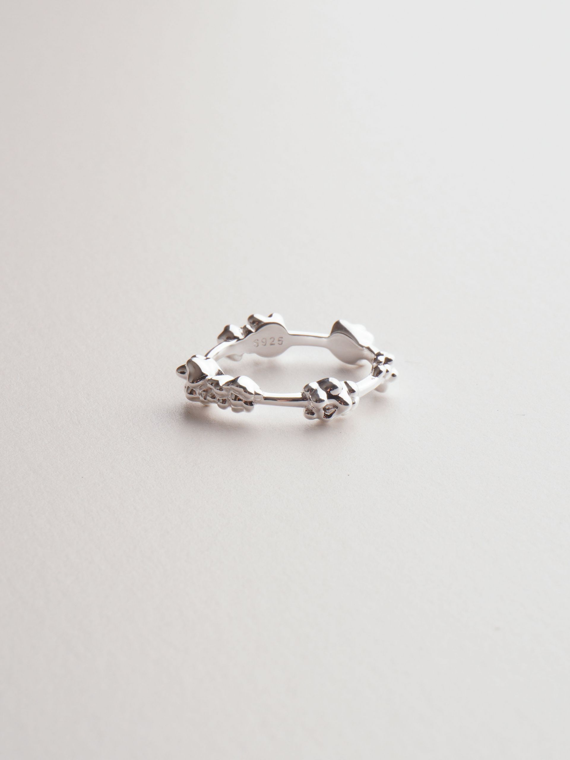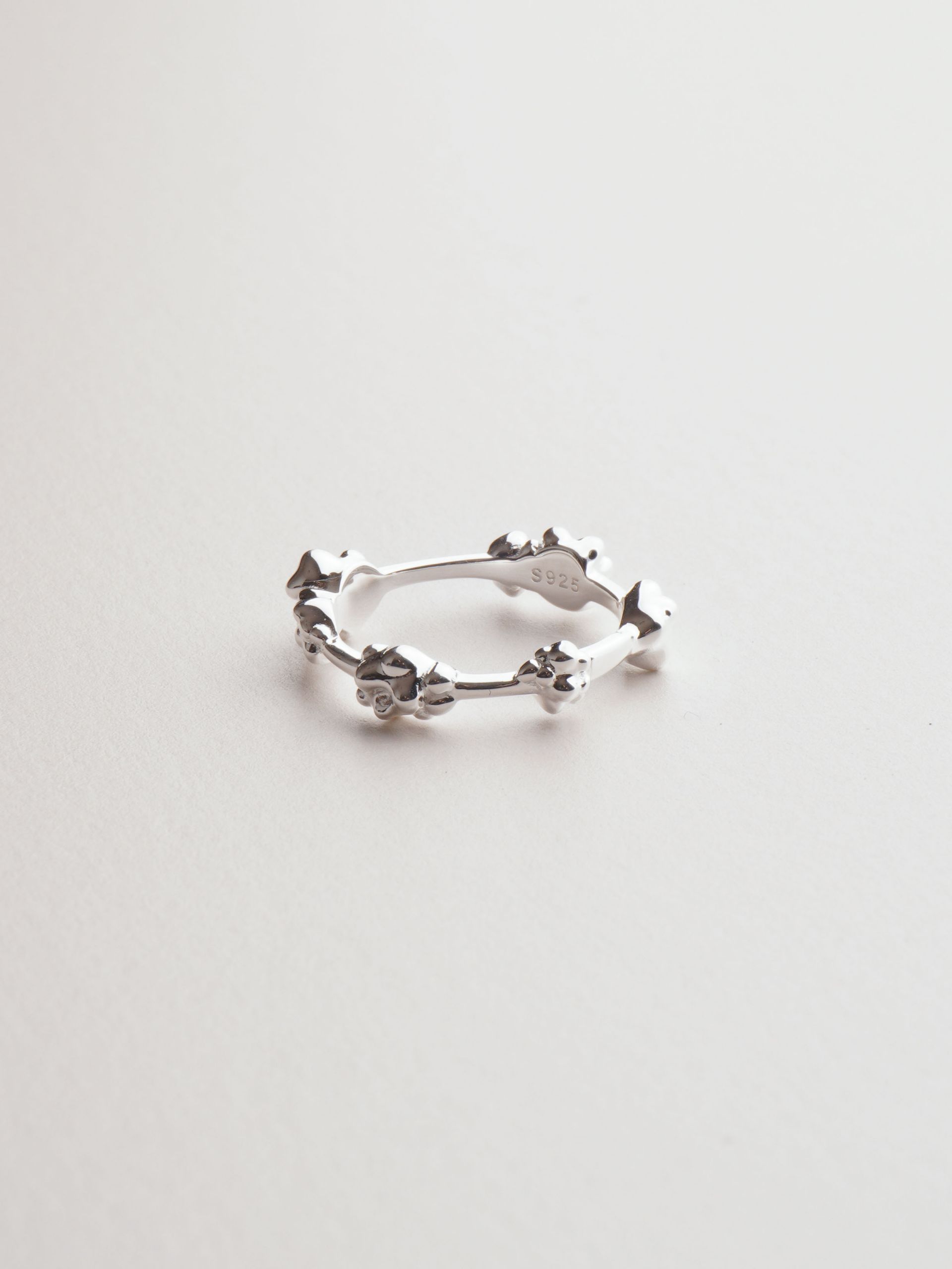 불규칙하게 피어난 작은 꽃송이들이 링을 따라 이어집니다.